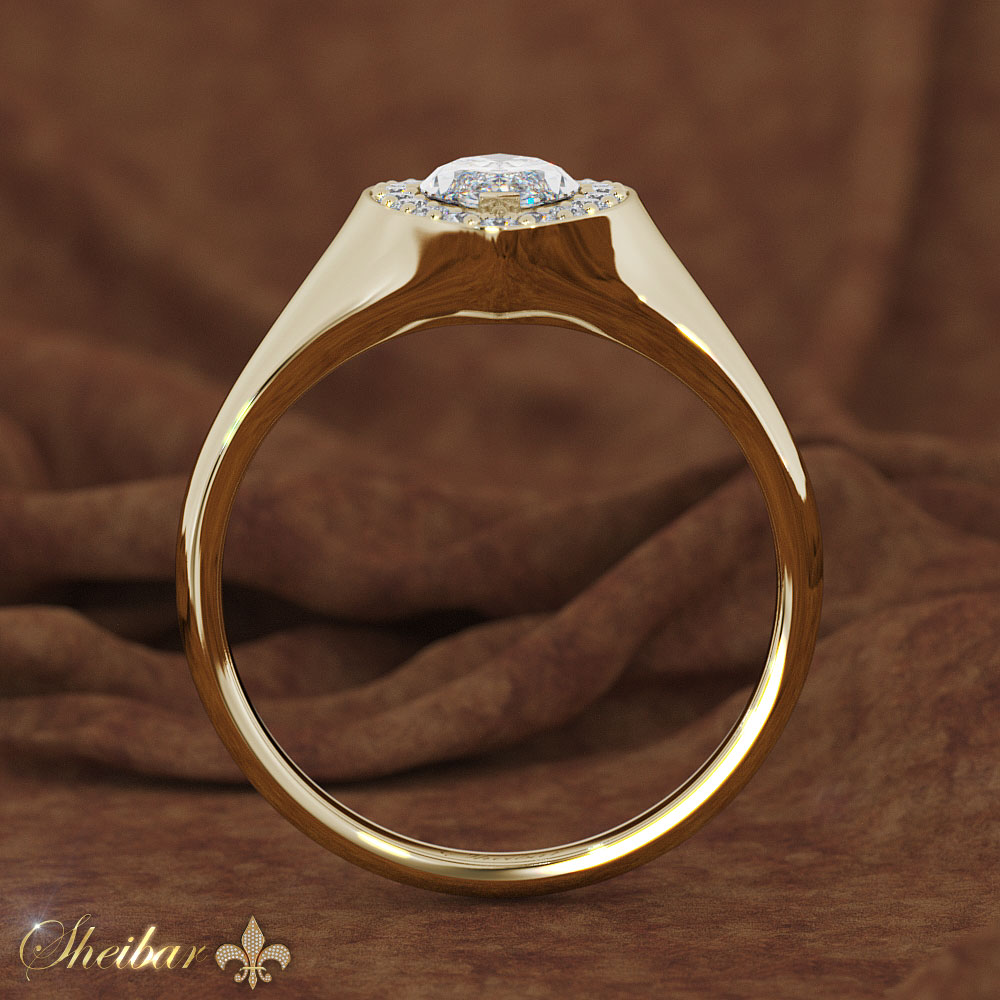 טבעות אירוסין ויהלומים- טבעת מרקיזה טבעת מרקיזה עשויה זהב 18 קראט. עיצוב הזהב מחלקו התחתון של הטבעת עד למעלה מתחבר בצורה מעוגלת מה שיוצר צורת מרקיזה כאשר במרכז הראש משובץ יהלום בצורת עין בחיתוך מרקיזה. סביב היהלום המרכזי מעוטרים יהלומים לבנים המעצימים אותו היוצרים נצנוץ ויופי למראה עתיק ואלגנטי. לחלוטין טבעת מיוחדת במינה.