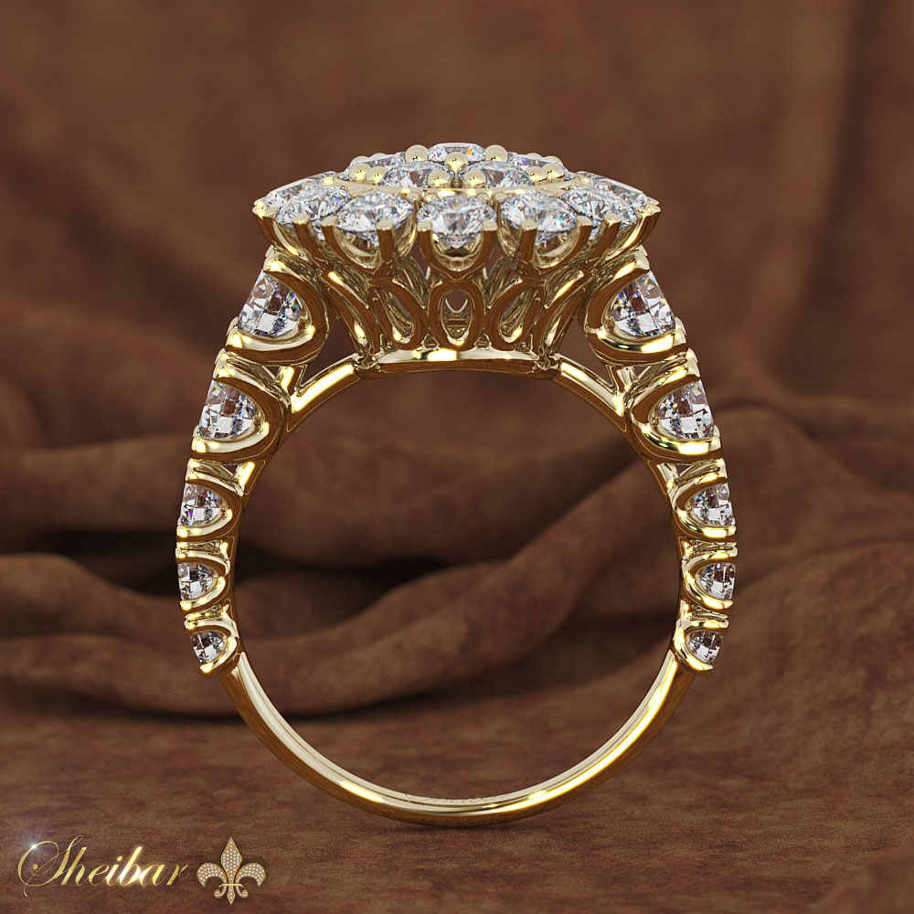 טבעת מדהימה ויוקרתית משובצת כולה יהלומים VS/F קולקשיין במשקל 2.80 קראט.🌟 הטבעת מורכבת מ-7 גדלים שונים של יהלומים ליצירת מראה הדרגתי ומרשים של הטבעת. הטבעת כולה עשויה מראשים מעוטרים ומעוצבים של כוסות 4 שיניים. (כמו מראה של שיבוץ של יהלום מרכזי גדול) מה שנותן מקסימום נצנוץ וכניסת אור מהצדדים לתוך הטבעת הנותן לטבעת מראה של הר יהלומים, ובכך כמעט ולא רואים את הזהב. במרכז הטבעת משובצים 7 יהלומים צפופים המדמים אילוזיה של יהלום אחד של 3 קראט יהלום בודד. טבעת פשוט מושלמת💎 עיצוב בלעדי ל"תכשיטי שחיבר" ע"י המעצב הראשי שלנו יוסי שחיבר.