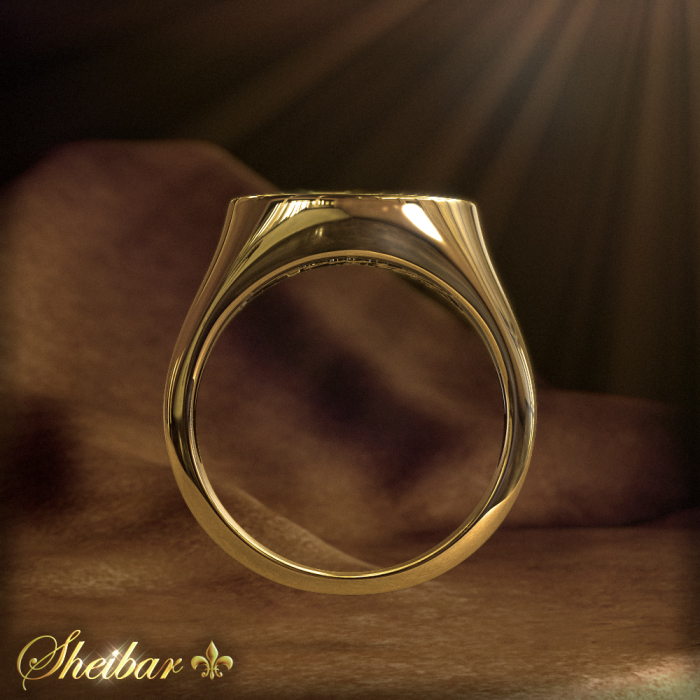 טבעת "חוטם" המתאימה לגבר והן לאישה. עיצוב הטבעת נעשה בצורה מעוגלת וחלקה בכדי להגיע לרמת נוחות ענידה גבוהה. הטבעת מתחילה כמעוגלת מחלקה התחתון ועד אשר מגיעה אל ראשה, לרוב אורך הטבעת עבודת הזהב נעשתה בזהב מלא ויוקרתי. ללא ספק כאשר עונדים טבעת זו על היד אפשר לראות את היוקרתיות וההופעה שטבעת זו מציגה. בחלק העליון של הטבעת ניתן לראות טבעת שטוחה וחלקה המדמה "חוטם" ועליה שובץ האות (s" (sheibar" ביהלומים לבנים ויפים, כאשר עבודת השיבוץ נעשתה בעדינות רבה ודייקנות בכדי לשמור על "אות" סימטרית ויפה. כמובן ניתן לשבץ כל אות או מילה לפי הזמנה. עבודת השיבוץ נעשתה בעבודת יד סימטרית ומדויקת במיוחד בכדי לשמור על ה"חוטם" נקי וחלק. (רוחב ראש הטבעת כ 15 מ"מ).