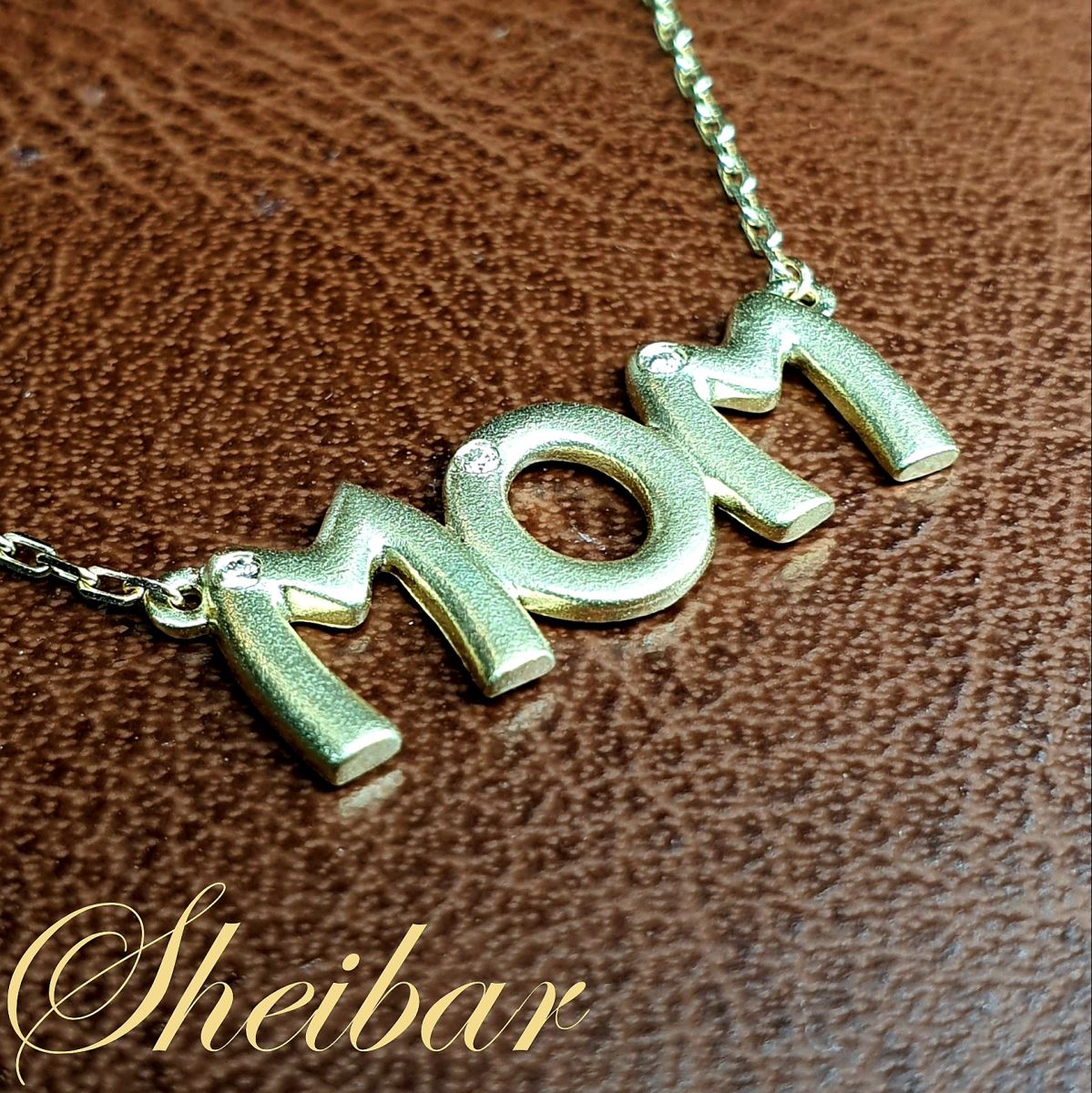שרשרת תליון MOM. תליון שנעשה במודל במיוחד לתליון. התליון עצמו עשוי זהב 14K וזהב איכותי ומלא ללא חללים בזהב (איכותי מאוד). על כל אות משובץ יהלום איכותי ויפה (ניתן להוסיף יהלומים לפי בחירה ובהתאם לשינוי בעלות). מתנה מושלמת לכל אישה!