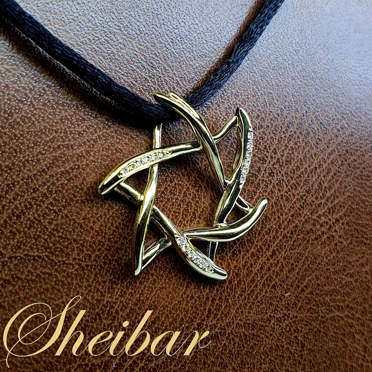 תכשיטי יהלומים לגבר- תליון מגן דוד מעוצב. תליון שנעשה בעיצוב מיוחד של הזהב. ביציקה מיוחדת ולא סימטרית כדי לתת עיצוב מרשים לתליון. על גבי 3 צלעות של המגן דוד משובצים יהלומים לבנים לגמרי ונקיים. שרשרת שרוך מיוחדת וחזקה עם סוגר זהב צהוב 14K. מתנה יפיפייה לגבר!