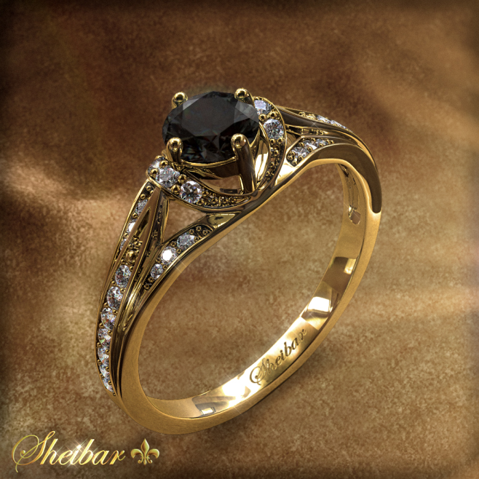 "Delor" ring, a ring in a rich design, impressive and unique in its beauty. This special ring begins as a gold hoop and at the top of the ring splits into three delicate and beautiful parts that hold the head of the central diamond. The small diamonds are embedded on both sides of the ring and are embedded along the split of the ring, thus creating a small splitting of 3 lines of diamonds in an amazing and high quality design. Very high level finishing and finishing work. The main diamond is a large black diamond, studded with the head of the ring and with all the diamonds around, helping the big diamond stand out. The contrast between the white diamonds and the black diamond in the center of the ring places an emphasis and a very impressive effect on the central diamond. A unique and impressive designed ring