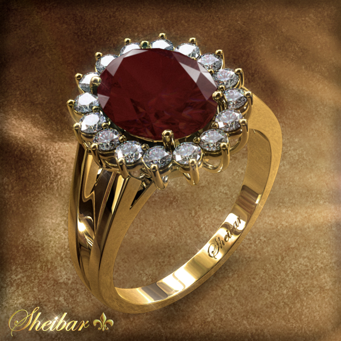 Ruby rings and diamonds, as is the ring Princess Diana. A princess ring in an upgraded and amazing design, with high quality work. First you can see the work from the base of the ring when it starts in one row of smooth gold and at the top splits into two smooth and beautiful gold bars. The gold is the most smooth and clean 18k gold. At the top of the ring you can see the amazing head, which has a great presence. In the center of the jewel there is a gorgeous red "ruby" stone, polished with ’OVAL’. Surrounded by this stone are white and large diamonds, which give an additional effect to the jewelry and create high quality work for the jewel. Without a doubt an impressive designed jewel
