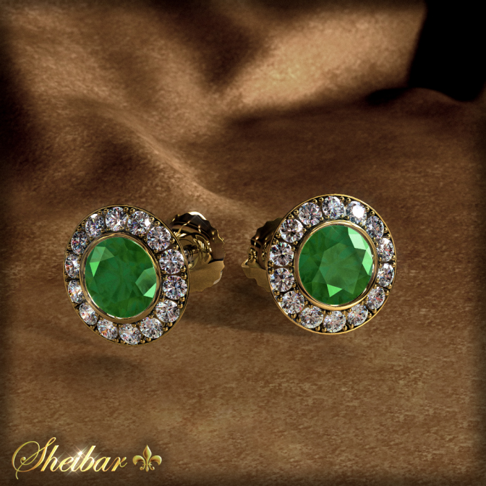 "Stephanie" emerald and diamond earrings, classic and impressive earrings. With a jewel in the center of the jewel there is a clear, beautiful green "emerald" studded with a "cup", surrounded by a smooth gold stripe that radiates a larger stone feel. Around the emerald are studded with small, delicate diamonds that surround the jewel and create a strikingly beautiful "crown" of diamonds. Earrings that will fit any woman .