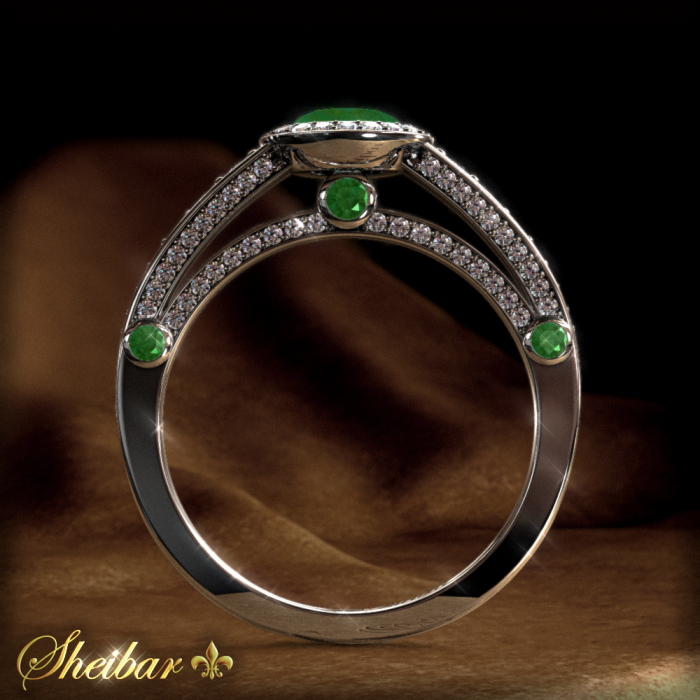 Emerald and diamond rings, the "Tiffany" model. A unique and prestigious ring, not for the faint of heart. A ring studded with diamonds in all its upper half of all sizes, a total of about 116 diamonds, and the ring profile can be seen in the shape of two arches embedded with small diamonds that go from the ring to the center, and in the profile of the ring in addition to three large gems. On the upper side of the ring is a central diamond, which comes with an emerald, green, clear and beautiful gem, surrounded by other small diamonds, and the ring itself is designed and composed of 3 different parts that complement the result The perfect ring is a ring that just can not be missed