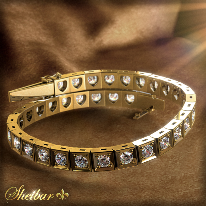 4 carat square tennis bracelet - A tennis bracelet studded with diamonds all around it . this bracelet is one of the most admired and beloved jewelry for women, because it is all studded with diamonds and undoubtedly has a very impressive presence. The bracelet is made of a vertebra, each of which is studded with a fine quality diamond. Around each diamond there is a smooth gold frame that adds to the size and presence of the jewel and to the sense of diamond size. A prestigious and impressive bracelet