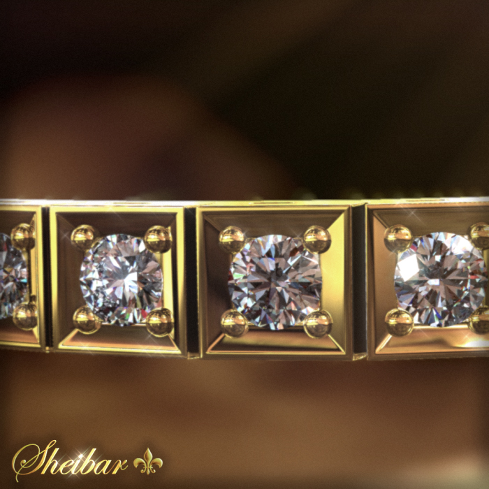 4 carat square tennis bracelet - A tennis bracelet studded with diamonds all around it . this bracelet is one of the most admired and beloved jewelry for women, because it is all studded with diamonds and undoubtedly has a very impressive presence. The bracelet is made of a vertebra, each of which is studded with a fine quality diamond. Around each diamond there is a smooth gold frame that adds to the size and presence of the jewel and to the sense of diamond size. A prestigious and impressive bracelet