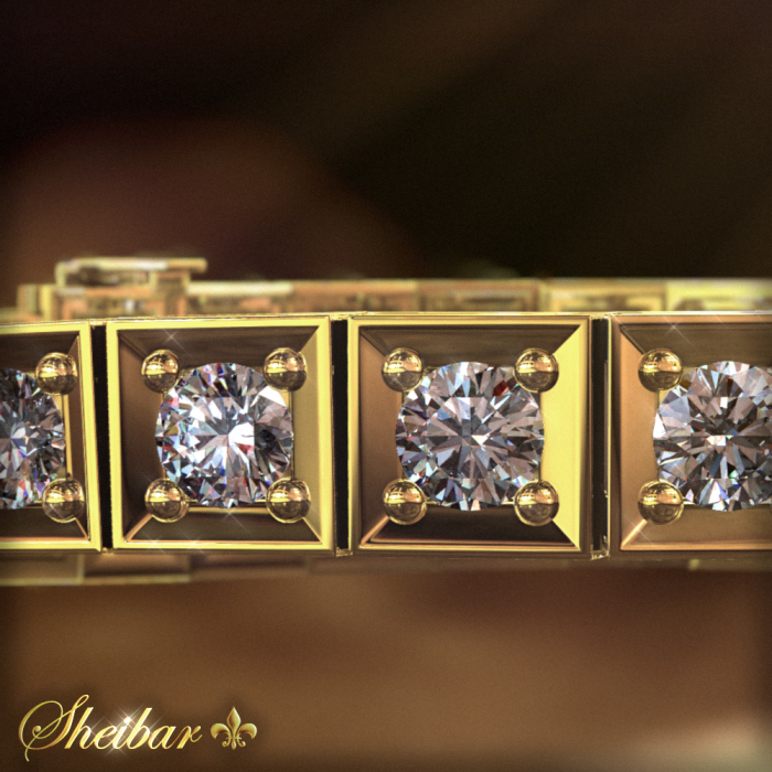 A tennis bracelet studded with diamonds. A tennis bracelet is one of the most admired and beloved jewelry for women, because it is all studded with diamonds and undoubtedly has a very impressive presence. The bracelet is made of a vertebra, each of which is studded with a fine quality diamond. Around each diamond there is a smooth gold frame that adds to the size and presence of the jewel and also to the sense of diamond size. A prestigious and impressive ...