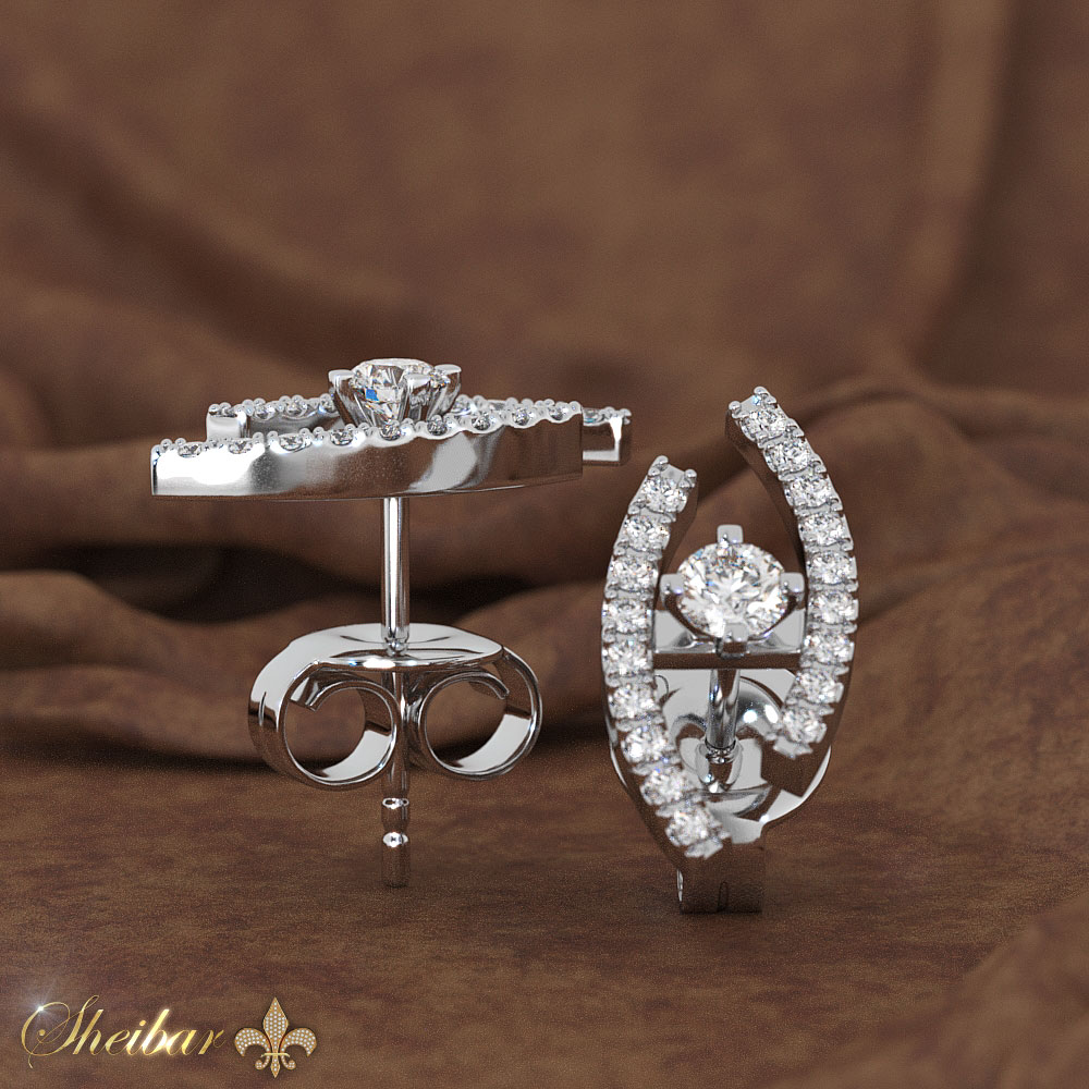 Unique earrings with a very special design with rounded asymmetrical design. These earrings are tight, but possess two arms that surround and emphasize the diamond center. Each arm is studded with a row of diamonds with each diamond held in 4 teeth. Among them is a central diamond that is also studded with 4 teeth. Earrings for people who like things "out of the box" but want a gentleman.
