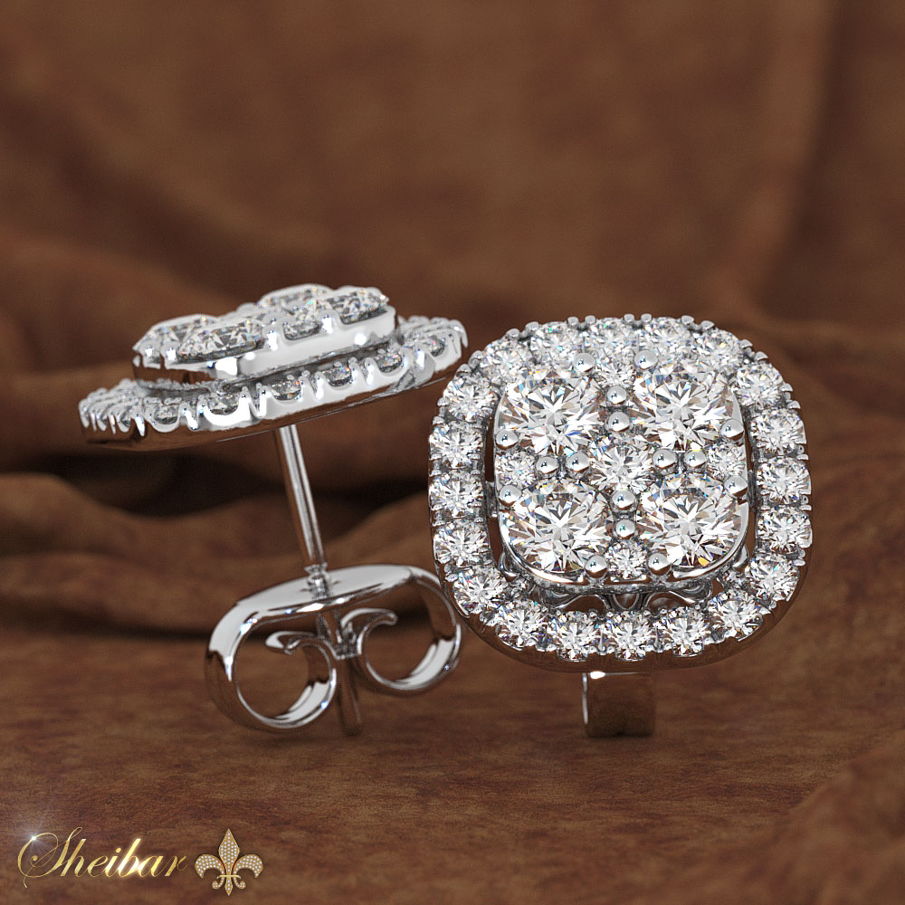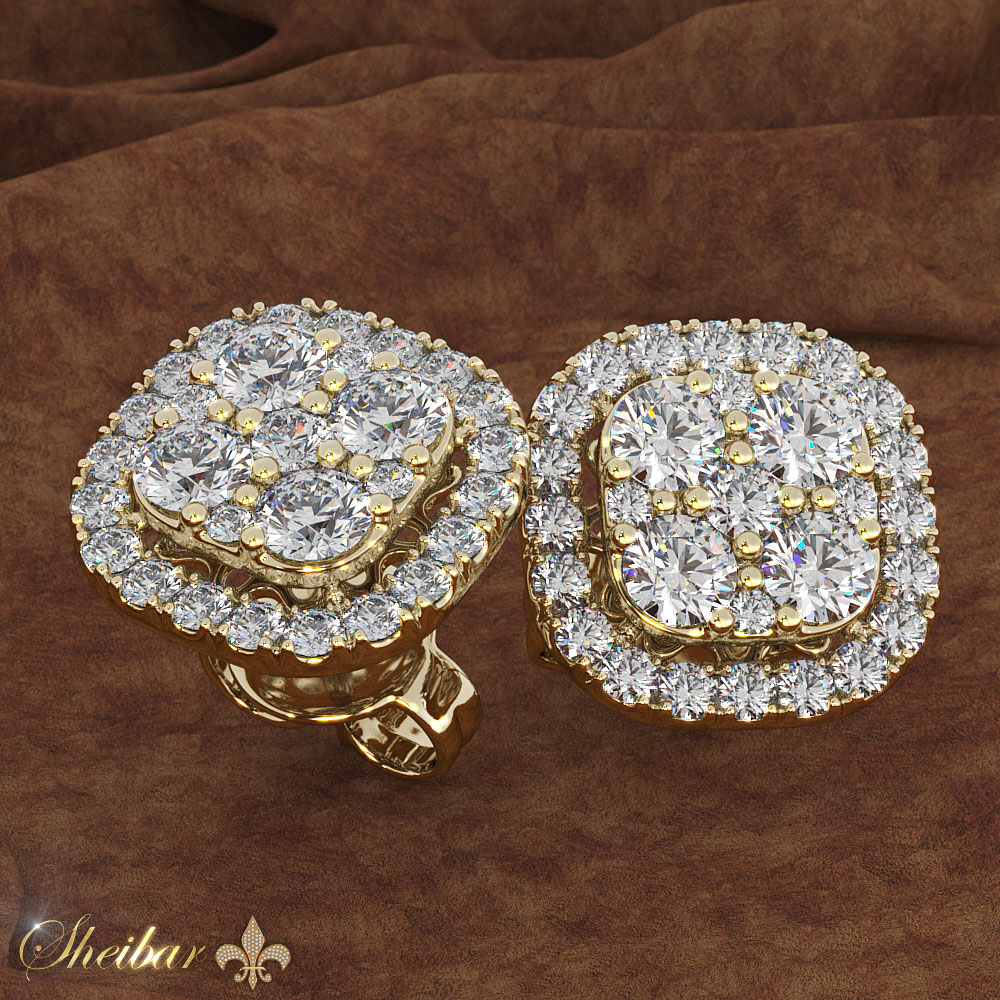 The delicate earrings have a right presence in their special design and original arrangement. The earring is made of solid gold and several stages of inlay which in its entirety creates a look of "carpet" diamonds without spaces between the gold. The outer circle is set with a diamond line, each with 4 teeth, and inside there are different sizes of diamonds. In the beginning, we will be able to see four larger diamonds placed in the middle, with additional diamonds embedded in them to create a unity of diamond placement. Earrings for anyone who wants something classic but special.