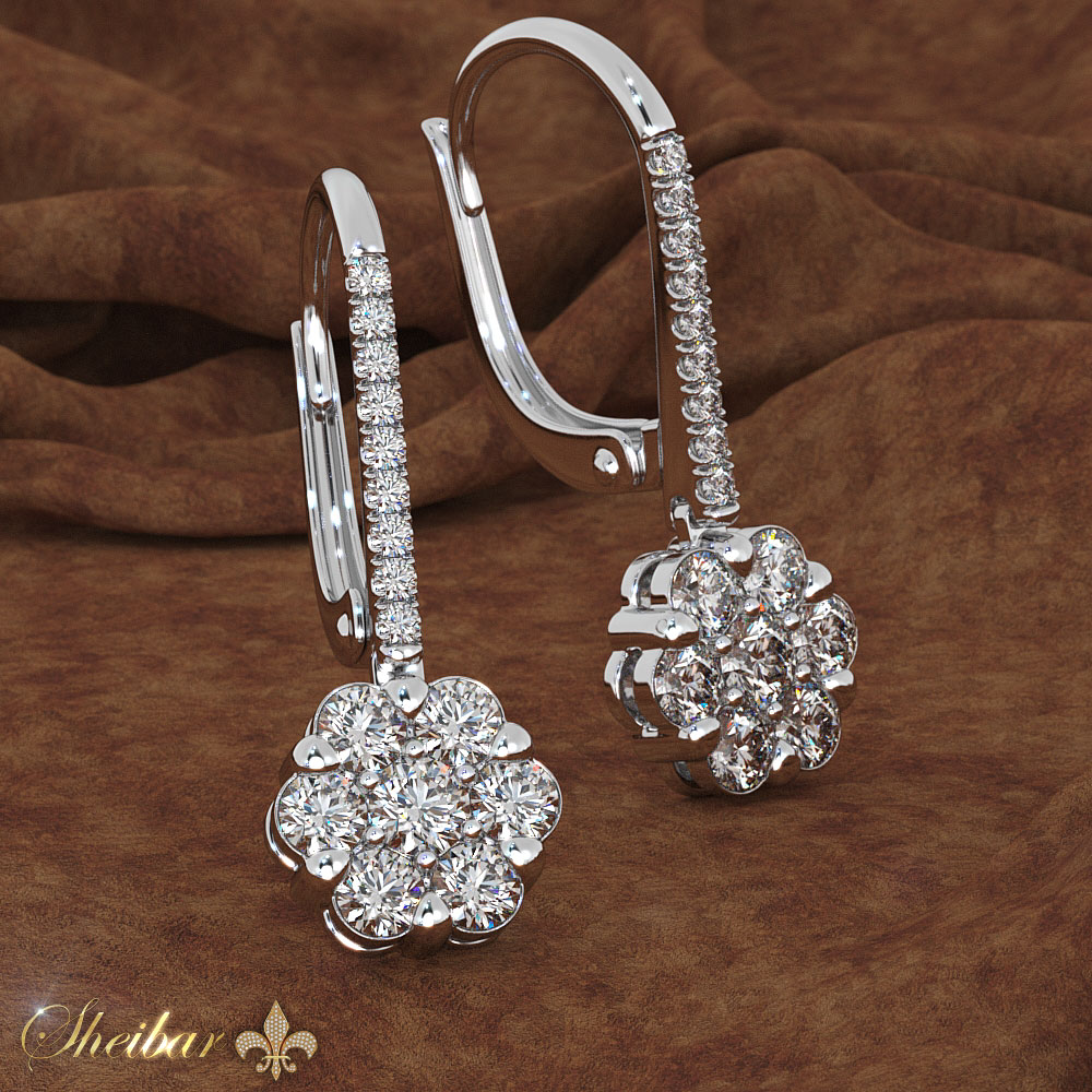 Earrings that are reminiscent of the "Yu Flower Earrings" model, but the main difference is that here at the top we have a more classic bracket - the English bracket. What distinguishes this model is that the English shutter is also embedded in a line of natural diamonds. Below it is a flower made of solid gold and seven natural diamonds that together create a uniform look.