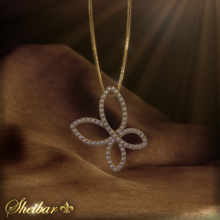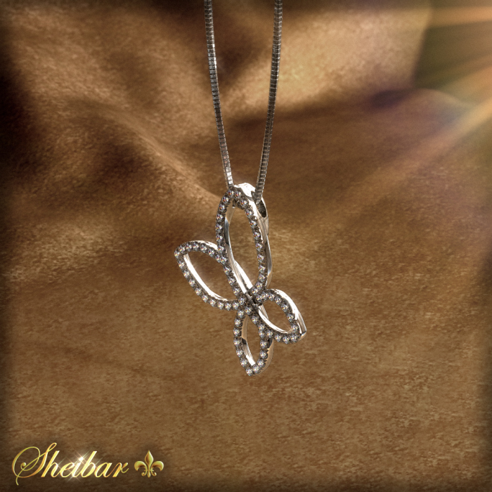 "Butterfly" pendant, gold necklace with a pendant. This delicate pendant is made with a special cast for a butterfly shaped pendant. The work of gold was done in precise, delicate and beautiful work. Gold is brilliant and delicate gold to maintain the delicacy of the pendant. In addition, the diamonds are arranged with exquisite handwork. The diamond is placed in "teeth" in order to maximize the presence and sparkle of diamonds. A delicate pendant suitable for any woman