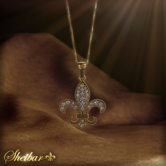 Diamond necklaces ,"mini Pashye "necklace in fine clover design. This delicate classic necklace, because of its design and the placement it gives prestige and specialty. The jewelry design is done with precision and symmetrical computer work. The 3 pieces of the pendant can be seen while the center is studded with small, delicate diamond bands, and two parts on both sides are also studded with small diamonds. The placement work was done by placing teeth and handiwork. A delicate and impressive piece of jewelry