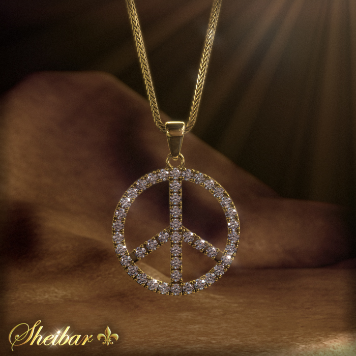 "Peace "pendant, in delicate design that is precisely and symmetrically designed, delicate and prestigious. The placement work was done by hand, delicate and special, to maintain a straight symmetry and a smooth and clean line of the jewelry. Each diamond can be seen in a uniform and clear manner. Each diamond is set individually with fine, precise teeth. The placement is done in a dense manner to maximize the amount of diamonds in the jewelry and thus the sparkle