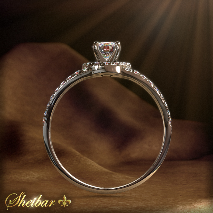 Engagement ring, "Persian" model, a delicate ring. In this special design of the ring you can first see that the base of the ring starts from one hoop, and then on each side of the ring splits into two delicate and beautiful gold pillars, with small white diamonds on their backs. After this split, these two gold bars reach the point where they touch the golden circle in the center of the ring. On top of this special gold circle, there are also small and beautiful diamonds that are reminiscent of a crown full of diamonds. The highlight is when you can see from the center of the hoop emerge 4 smooth and delicate gold pillars that are used to hold the center diamond of the ring. A delicate ring that combines richness and high prestige