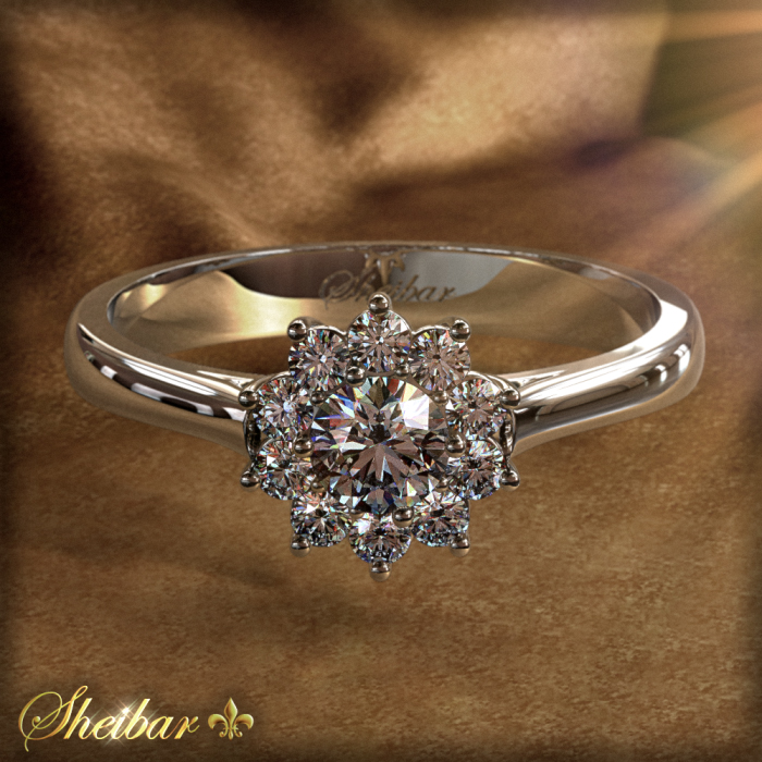 "Lotus" diamond ring, unique flower / sun-shaped ring. This ring was made in two separate special parts. The first part is the ring structure, and the second part is the special head made in personal design. From the center of the ring head, smooth, fine stripes of gold are used to hold the small diamonds at the top of the ring, as well as the central diamond in the center. An impressive and beautiful ring. The diamond placement was done one by one to highlight every diamond and diamond, with the small diamonds surrounding the center diamond like a beautiful and impressive crown. Serves as an engagement ring and a perfect choice for the perfect gift