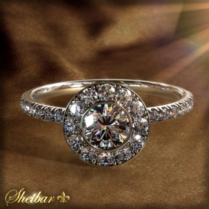 "Aspen" Diamond Ring. A ring studded around the center diamond with small white diamonds. The ring comes in a round shape and can be changed on demand in a square shape. At the top of the ring is the central diamond embedded in a "cup" embedded in the ring and surrounded by a thin, thin gold hoop (you can also remove the center diamond on demand). Unique and beautiful ring.