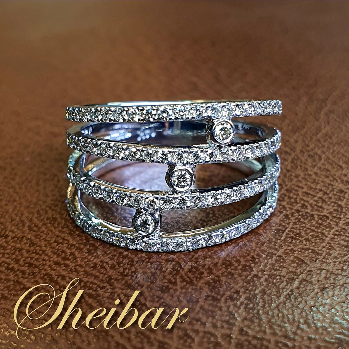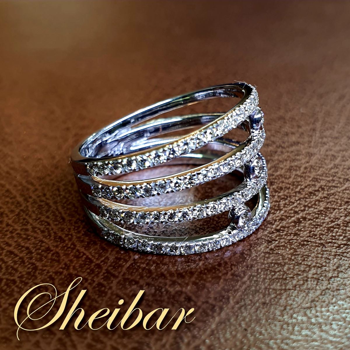 Seasons" - A prestigious and prestigious ring. In this ring one can see first and foremost the structure of the ring and the width that extends over a large area of the finger. This ring was made using special casting to maintain high symmetry. On the ring there are about 4 rows of brilliant and beautiful 18K gold to maintain the ring’s prestige. These four delicate gold lines are studded with about 100 beautiful white diamonds, which are set in "teeth", to ensure that the diamond’s sparkle remains high and beautiful. Between each "season" you can also see a larger diamond embedded in the "cup" in a diagonal. It is undoubtedly a ring with a great presence and at the same time maintains delicacy and uniqueness.