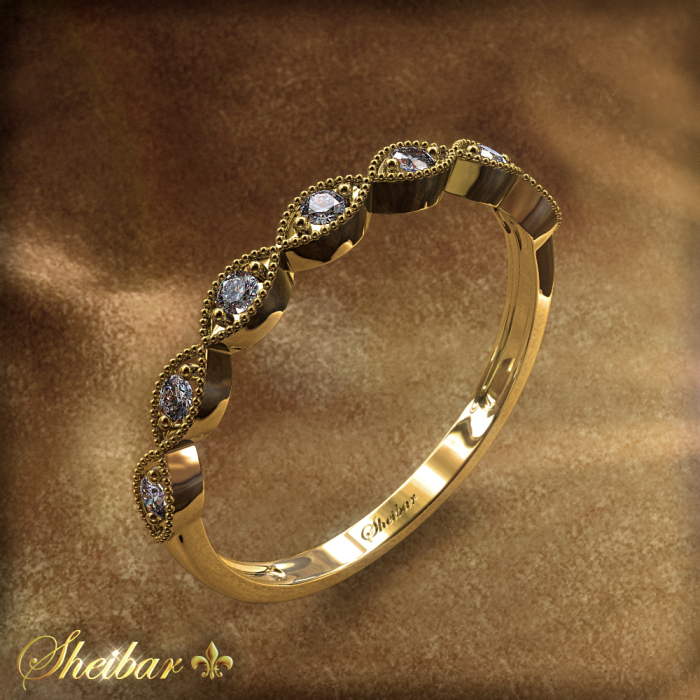 Diamond ring rings, "S" diamond ring. A unique design wheel ring with 7 delicate and beautiful diamonds on it. The ring is made of 14K gold, smooth and delicate gold. The special part of this ring is the gold work on the top . The work between the diamonds was done in the form of a delicate "coil" on the ring. The gold work was done in the form of very small and delicate balls, thus adding to the impressive sparkle of diamonds. (This ring can be ordered in several rows of diamonds by advance order). A ring that serves as a ring in itself and as an accessory ring for other jewelry .