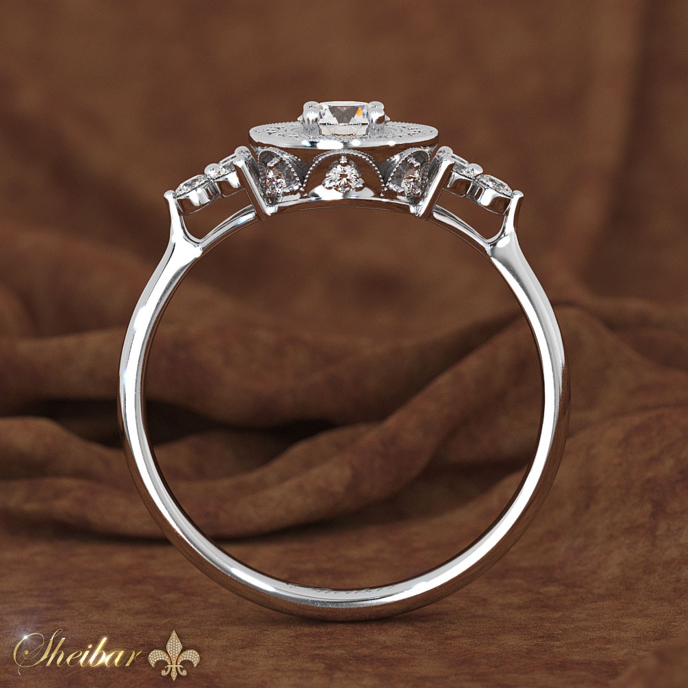"MULIER "Diamond Engagement Ring. The ring is made in a vintage style, built in 2 parts, in a very special way, with a thin and delicate teeth and on its end, on each side, there are 3 diamonds, each with 2 points and held in 4 teeth. In the center there is a head that is studded on all sides to give a more prestigious look , Vintage and royal. In the center is a beautiful natural diamond of 0.40 points and completes the whole ring.i