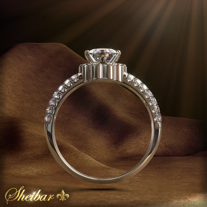 Engagement rings and diamonds, "Maridine Flower" ring. The ring is prestigious and impressive in its beauty. The ring was made by uniform and symmetrical casting, in order to keep the ring angles straight and smooth. The pinch and ring polish are hand made professionally and at the highest level. On both sides of the ring you can see 3 impressive and beautiful rows of diamonds set in a symmetrical and uniform shape, which looks like a shiny shiny diamond carpet. A wide and impressive ring. In the center of the jewel you can see a large, impressive, semi-carat diamond, studded on six beautiful and beautiful "gold teeth" that hold the diamond as an impressive "crown" and in the safest way One of the most impressive rings there is!