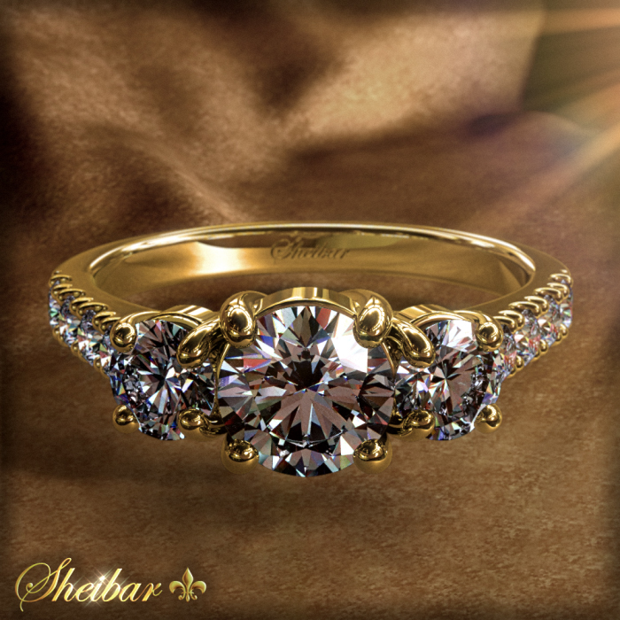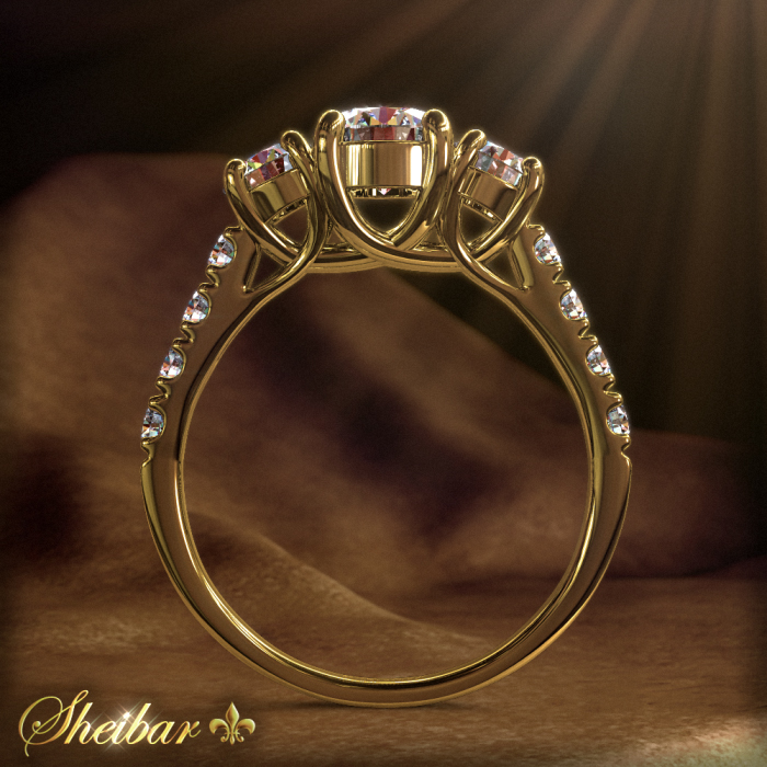 Engagement rings, Model "Trillion". A special designed ring . On the ring are small diamonds (while larger than average) , embedded on both sides of the ring. At the top of the ring you can see a special and interesting ... On both sides of the ring profile you can see the design of golden threads shaped like arches that combine with each other and form a special combination of gold threads . In the center of the ring you can see the large central diamond that is at the top of the pyramid and can not be missed. In addition, two diamonds can be seen on both sides of the central diamond, which gradually accentuate the ring and form together with the rest of the diamonds from a type of pyramid in several sizes for diamonds. A prestigious ring that is unique and impressive in its beauty .