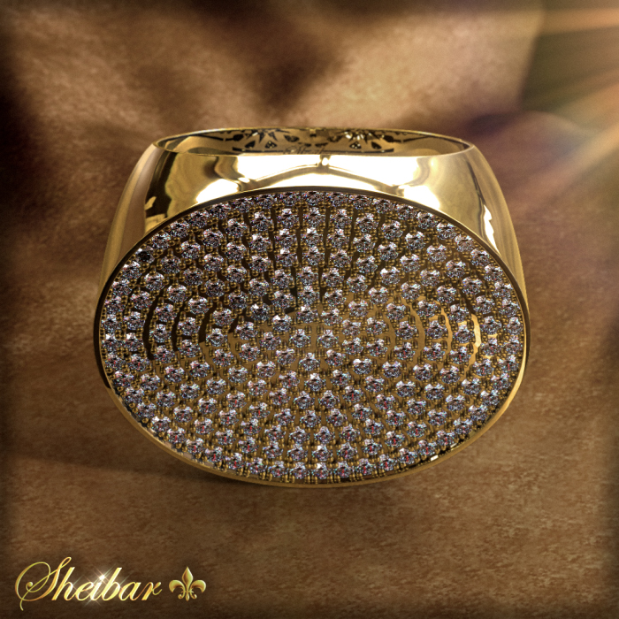 "OVALHULET" diamond ring, oval shaped. This large and impressive ring was made in special casting work, due to its size and the number of stones in it. The gold work was done smoothly and brilliantly, with the ring rounded from all angles to maximize the comfort of its size. On the upper part of the ring you can see a large and wide surface of oval-shaped gold. On this surface are 188 beautiful and white diamonds, hand-crafted at a high precision level, in order to maintain precise and symmetrical work. The placement work was done in circles, from the outside to the inside, thus creating many circles one by one. An impressive ring with a spectacular and sparkling presence