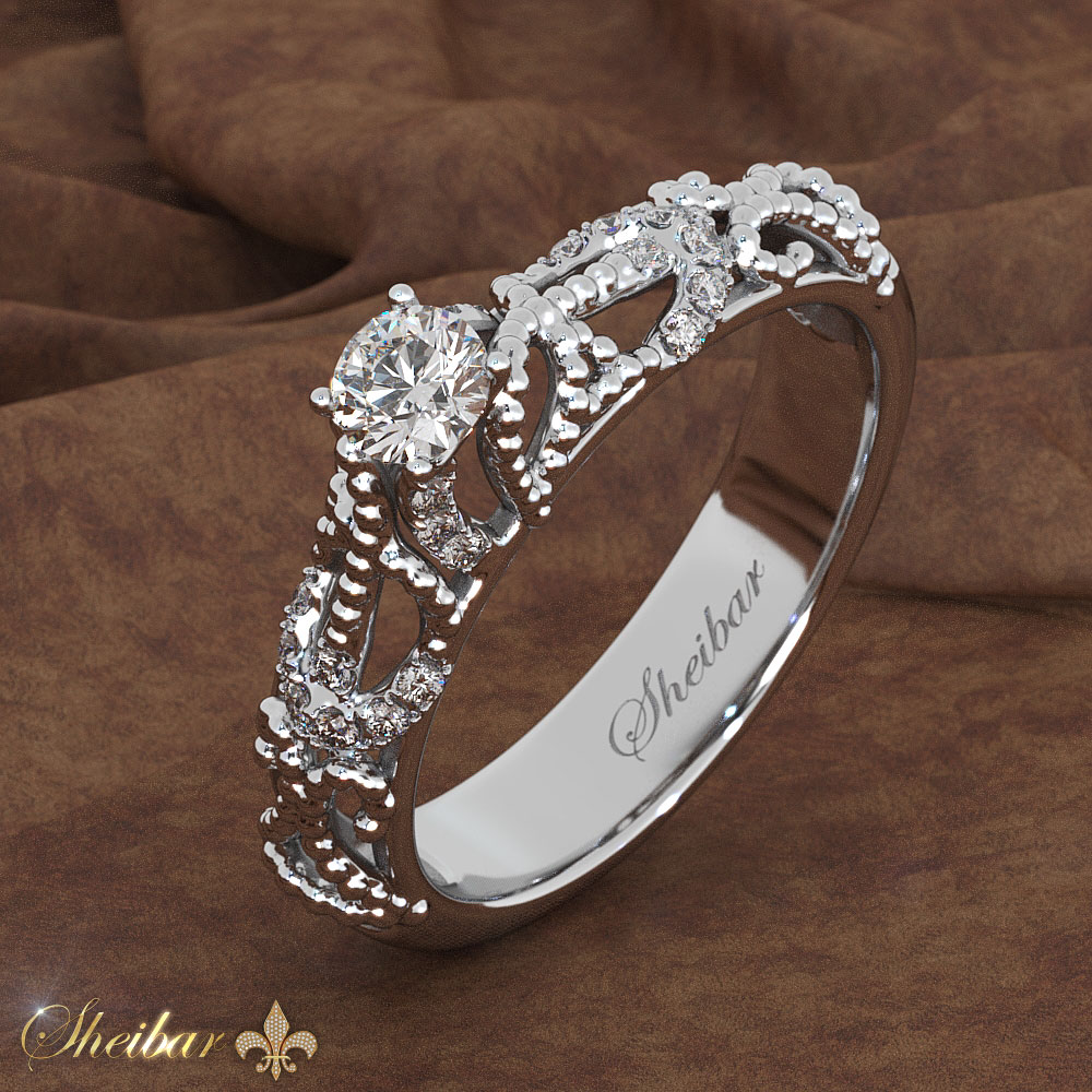 Engagement ring "ropes" . The ring was designed in a precise and unique model, in order to keep all angles of the curling at a high and precise level. The bottom of the ring begins with a strong, solid gold base that reaches the center of the ring, with thin gold curls which are delicate gold balls that resemble small diamonds. this design is along the whole ring to the summit, when at the end you can see 2 rows of fine diamonds that fit perfectly with the ring. At the end of this play is the large and impressive diamond that gives an effect and an emphasis on the diamond and the ring itself. A special and impressive ring